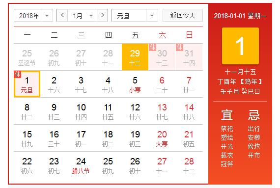 放假時間為:2017年12月30日-2018年1月1日共3天,2018年1月2日為上班日。
